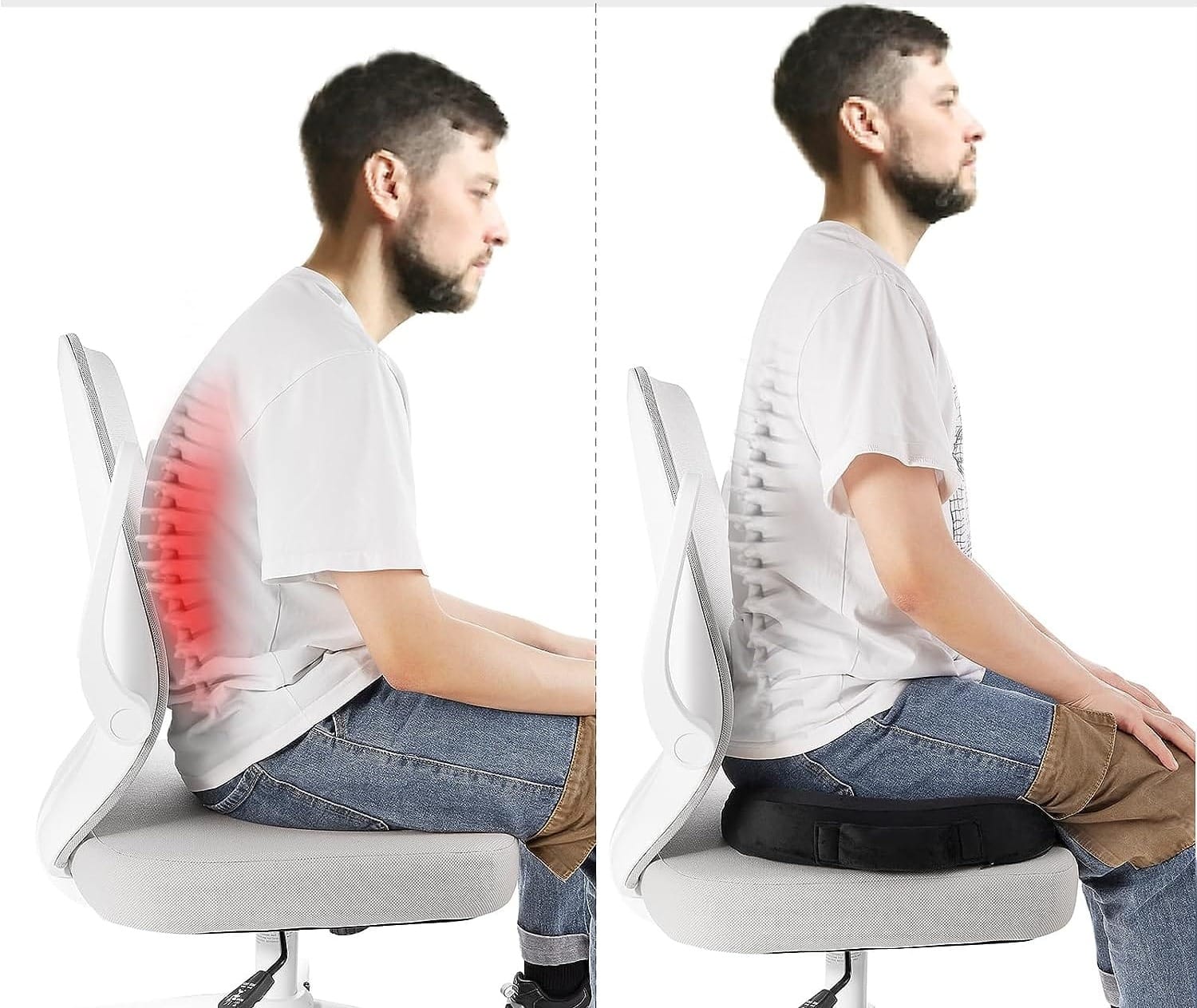 Aylio's Comfort Foam Seat Cushion is a great way to take pressure off your spine while you sit. The U-shaped rear cut-out prevents lower back soreness, and the coccyx hovers above the cut-out, preventing pressure on the tailbone.
